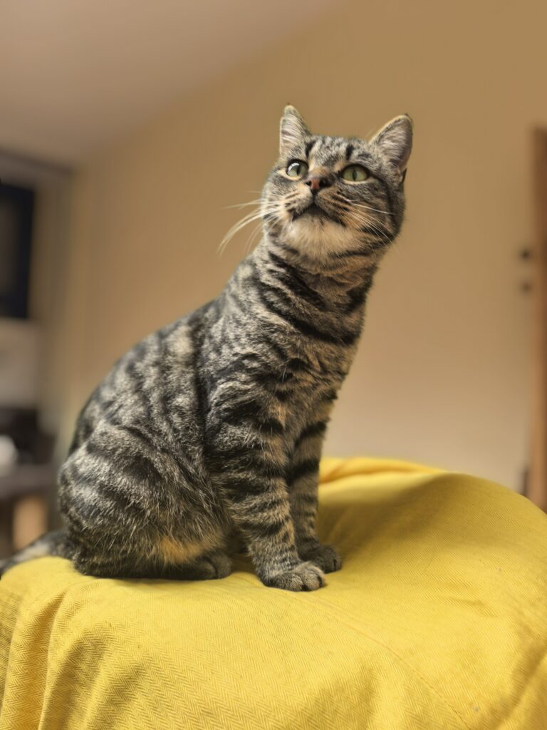 Gréti egy nagyon kedves, szeretetre méltó cica, de a többi macskával nem mindig jön ki jól. Ezért leginkább egyedüli cicának ajánljuk, ahol minden figyelmet és törődést megkaphat. Nyugodt, szeretetteljes környezetben gyorsan megmutatja ragaszkodó oldalát is.