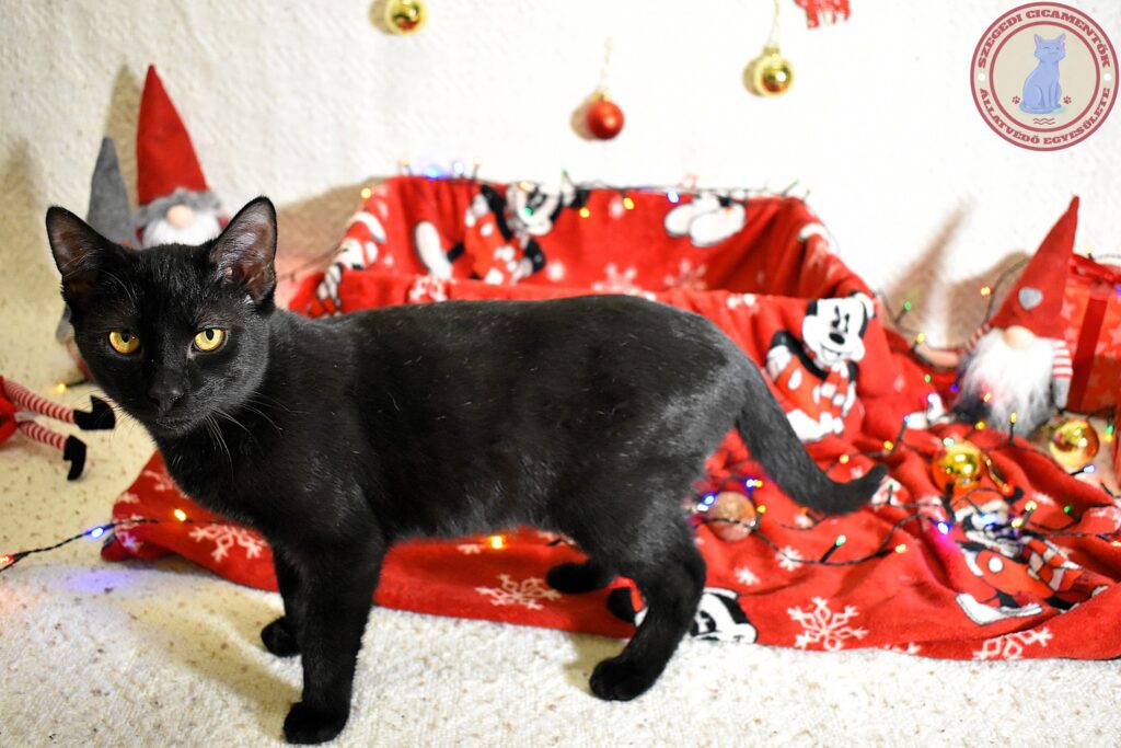 Ez a fekete kölyök kandúr egy igazi energiabomba: játékos, életrevaló és tele van kíváncsisággal. Minden új dolog érdekli, szívesen fedezi fel a világot, és bárkivel szívesen barátkozik. Ragaszkodó, kedves természetű cicus, aki sok vidámságot és szeretetet hoz majd új otthonába.